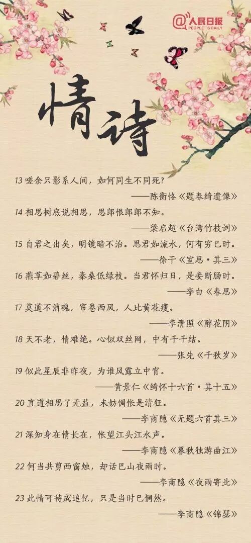 “似此星辰非昨夜,為誰風(fēng)露立中宵”;“玲瓏骰子安紅豆,入骨相思知不知”;“天不老,情難絕。心似雙絲網(wǎng),中有千千結(jié)”......從相遇到相知,從相戀到相守,情詩或有千百句,卻唯有一人,讓你懂得了詩中的美!